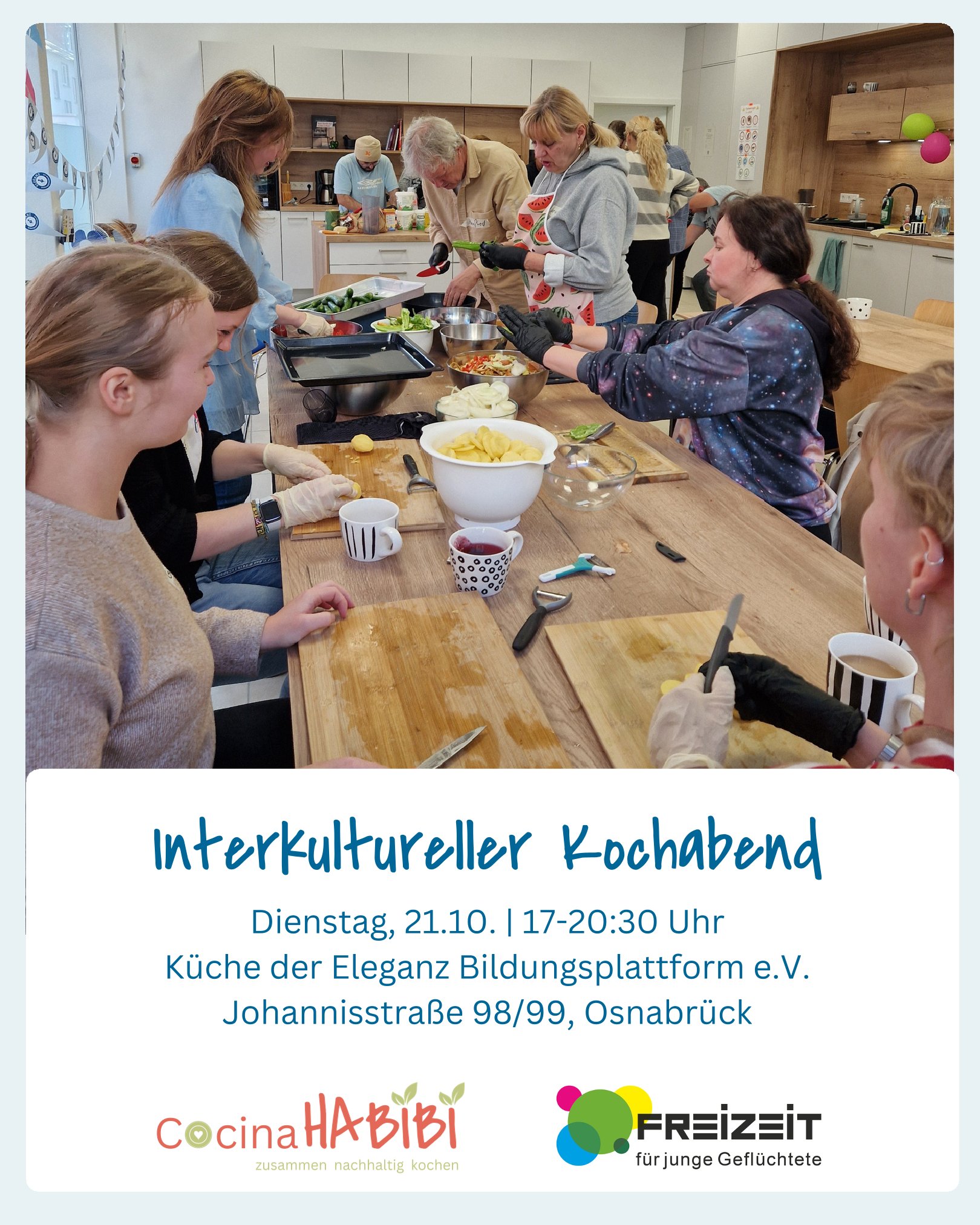 In unserer Interkulturellen Begegnungsküche Cocina Habibi treffen sich Menschen mit und ohne Flucht- oder Migrationserfahrung, um gemeinsam zu kochen, zu essen, sich auszutauschen und voneinander zu lernen.